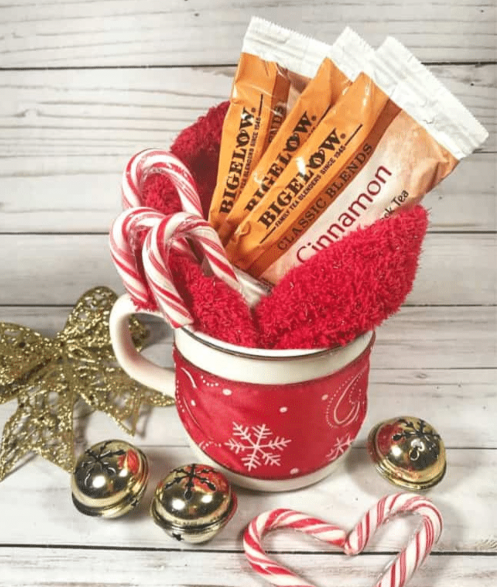 Mug filled with fuzzy socks .